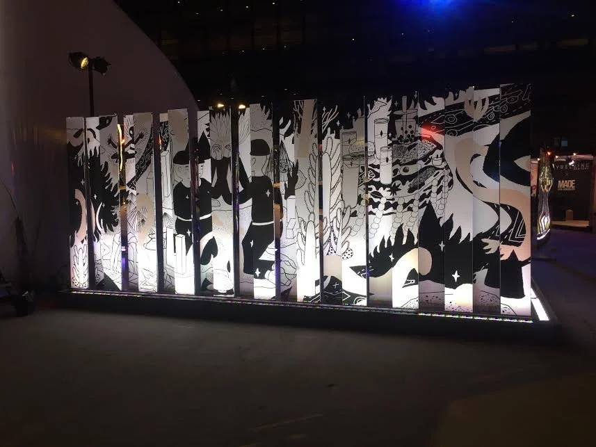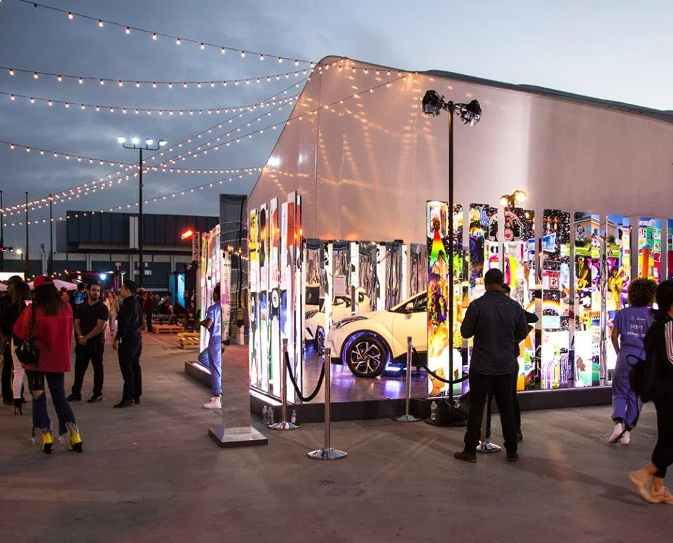 This collaboration with Refinery29 features Toyota at the MadeLA show. The installation includes a 20-foot by 20-foot stage bordered by 78 graphic panels. The panels have mirrored interiors for an infinite effect and UV-reactive vinyls on the outsides that showcase the work of three LA-based artists.
